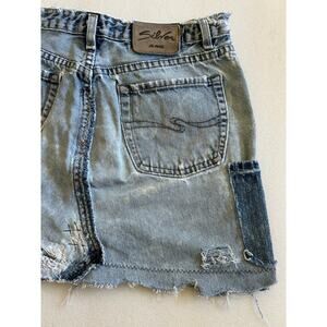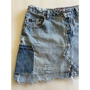 Vintage 90s Rework Silver Jeans Distressed Button Fly Denim Skirt Size 31 Grunge