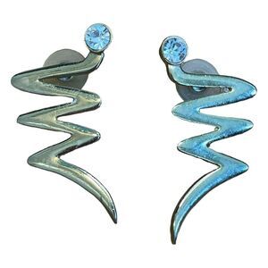 90s Vintage Zig Zag Shape Earring that have a Large Single Rhinestone at the top in a Shinny Gold Tone Metal that hand down from a pierced post. They are great for casual days at work, school, date night, night out with the girls, and Family Dinner. It would make a great Christmas Hanukkah Valentine’s Day Birthday or any Holiday gift!