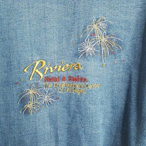 Vintage 90s Riviera Hotel Casino Las Vegas Denim Jacket Mens Size XXL Distressed