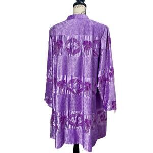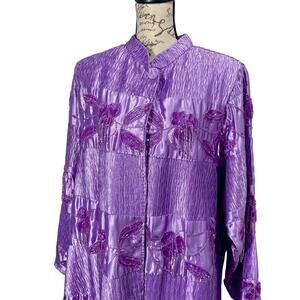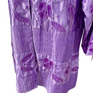 Vintage 90s Roaman’s Purple Satin Sequin Open Jacket Formal Coat Topper Sz 18