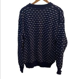 Vintage 90s Robert stock grunge sweater crewneck w blue and white pattern Sz M