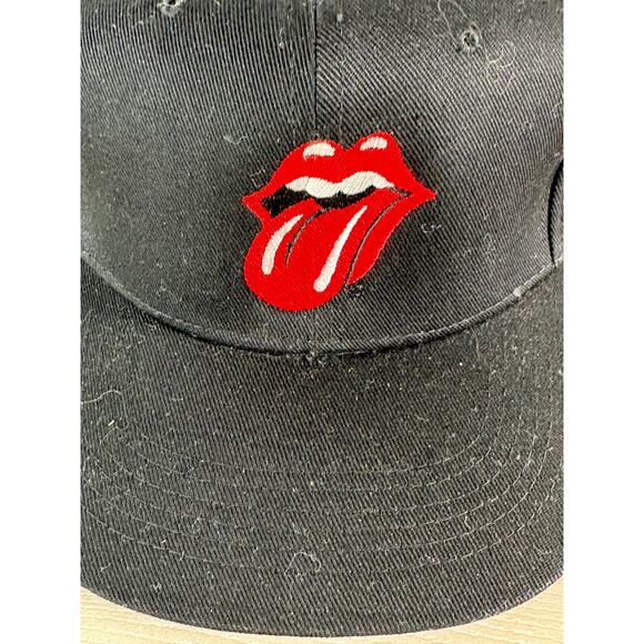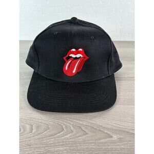 Original 1990s Rolling Stones snapback hat from the 1994–1995 Voodoo Lounge World Tour. Features the iconic red tongue & lips logo embroidered on front, and “Voodoo Lounge” on back. Black hat with adjustable snapback closure. Official Brockum Worldwide licensed merchandise. Rare and highly collectible Stones tour hat.