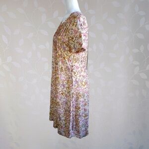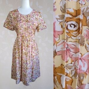 Vintage 90s Romantic Floral Pleat Front Knee Length Dress Bentley Yellow Pink 6