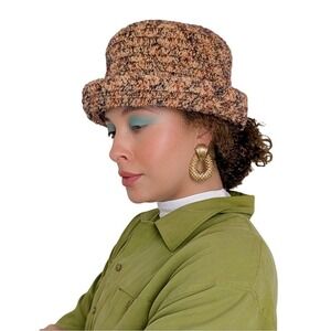 Vintage 90s Romcom Multi Color Cotton Knitted Feminine Bowler Hat Diane Keaton