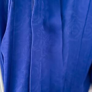 Vintage 90s Royal Blue Pleated Rose Floral Imprint Secretary Blouse size 8P MP