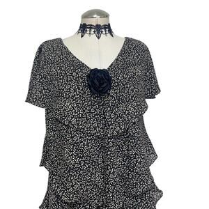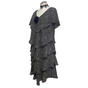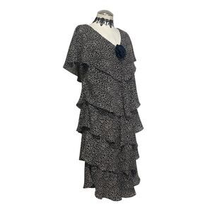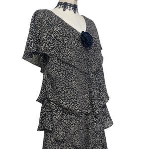 Vintage 90s Ruffle Tier Layered Cocktail Floral Dress Romantic Gothic Indie