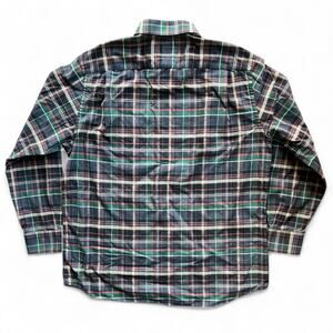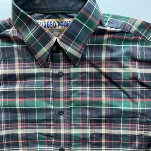 Vintage 90s Rugged Point Plaid Button Up Shirt Green Purple Tan Preppy Grand Pa