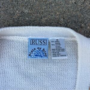 Vintage 90s Russ White Primary Color Floral Knit Herringbone Check Sweater Vest