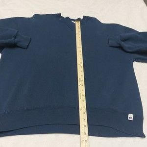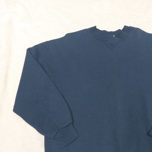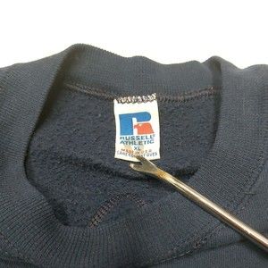 Vintage 90s Russell Athletic Navy Blue Blank Crewneck Sweatshir USA Made Size XL. Some stains throughout the front. Please see pictures for condition and measurements for proper sizing.
