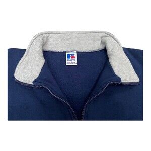 Vintage 90s Russell Athletic Navy Blue Quarter Zip Fleece Sweatshirt, Size Large