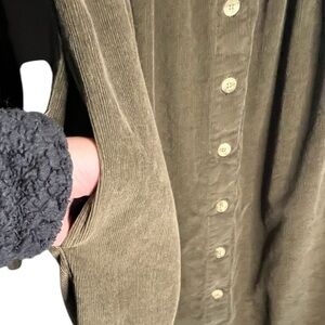 Vintage 90s S. Roberts Brown Corduroy Button Down Long Sleeve Maxi Dress SZ L