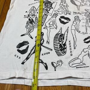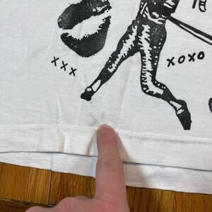 Super awesome, very 90s graphic on this vintage single stitch tee. Doesn’t explicitly mention Wayne’s World but considering the copyright (looks like 1992) and the giant SCHWING text I kind of assume that’s what this is in reference too. Fruit of the Loom tag, made in USA. Great piece. Size large. Some small discoloration spots. See pictures for details and measurements. Orders ship out on Monday, Wednesday, and Friday.