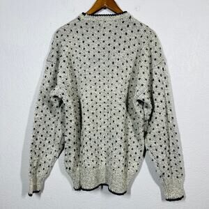 Vintage 90s SKYR Wool Grandpa Sweater Crewneck Long Sleeve Cream blue - XL