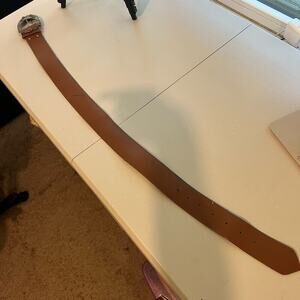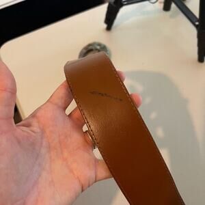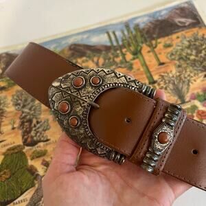 Vintage 90s Saffron Made in Italy Brown Genuine Leather Stone Buckle Belt M