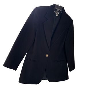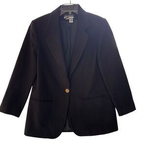 Vintage 90s Sag Harbor 100% Pure Wool Black Classic Blazer Golden Button Sz 8P