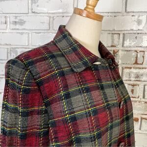 Vintage 90s Sag Harbor Burgundy Green Plaid Womens Button-down Blazer Jacket