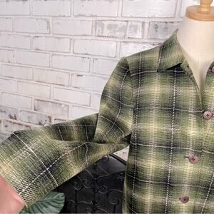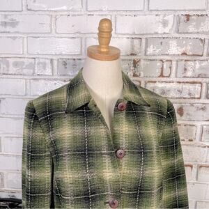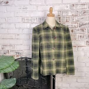 Vintage 90s Sag Harbor Green Plaid Womens Long Sleeve Button-down Blazer Jacket