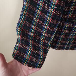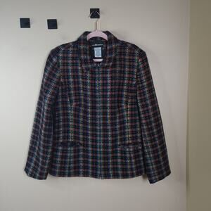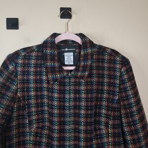Vintage 90's Sag Harbor Rainbow Color Plaid Patterned Tweed Jacket Size 16