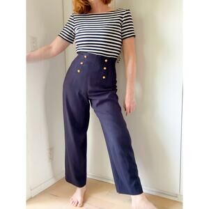 Vintage 90s Sailor Style Jumpsuit Navy White Nautical Wide Leg Size Sm/4