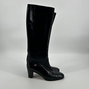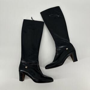 Vintage 90s Salvatore Ferragamo Knee High Boots Womens 8.5 AA Black Italy Made