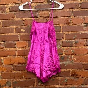 Vintage 90’s Samye Newman Hot Pink Lace Teddy Romper Size Small