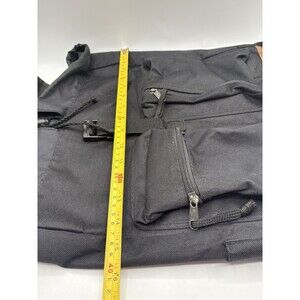 Vintage 90s Sasson Canvas Backpack w/ Suede Trim – Rare Retro Authentic backpack from the 1990s. Black canvas body with brown suede trim + front flap featuring a geometric Southwestern-style embroidered band. Adjustable straps, zippered front pocket, and buckle closure. In good condition showing normal wear from smoke free home. Not perfect, see photos for details. #retrobag #vintagebackpack #school #90s #depopfinds