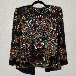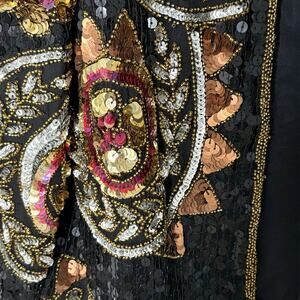 Vintage 90’s Scala Sequined Beaded Silk Jacket Black Gold Pink Size MP
