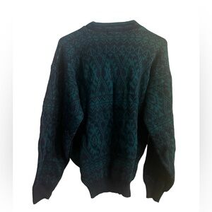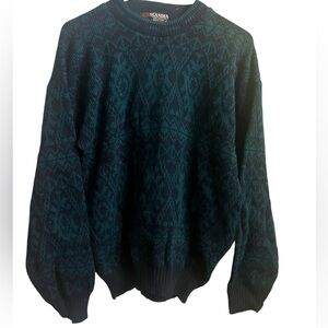 Vintage 90s Scandia Sweater Men’s Size L Navy Green Autumn Knit USA Made Fall