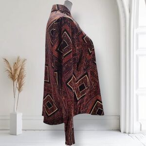 Vintage 90's new old stock with Loehmann's tag attached. Relaxed fit button up with collared neckline and long button cuff sleeves, woven twill fabric. Geometric themed scarf print.