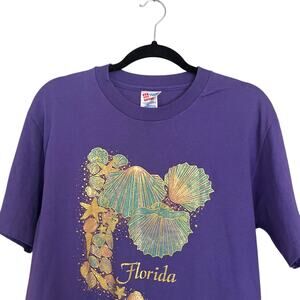 Vintage 90s Sea Shells Florida Graphic Medium T Shirt Large Purple Tourist Tee