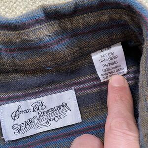 Vintage 90s Sears Flannel Shirt XL Tall Brown Stripe Blanket Cotton