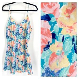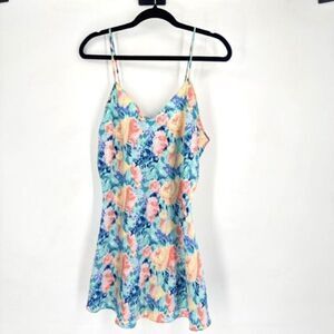 Vintage 90s Sedu Women's Floral Satin Slip Dress Lingerie Multicolor Medium