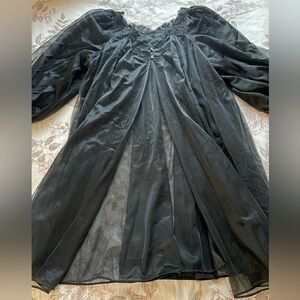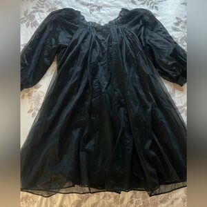 Vintage 90s Sheer Black Open Front Nylon Babydoll Dress Small Whimsigoth Goth
