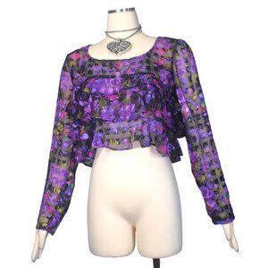 Vintage 90s Sheer Ruffle Floral Crop Top Long Sleeves L