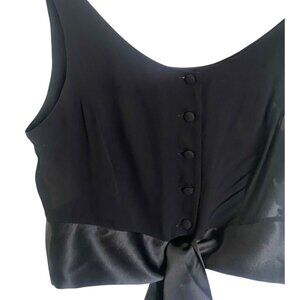 Vintage 90's Valentino blouse in a sheer black viscose with a cropped fit. Button closure down front with a large satin ribbon.