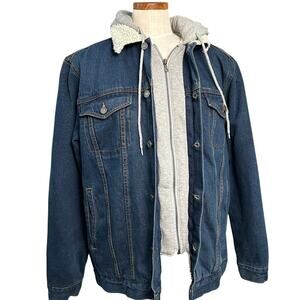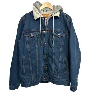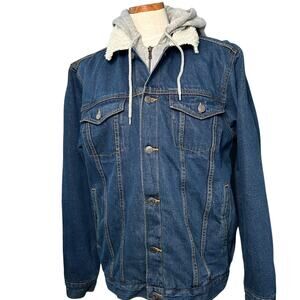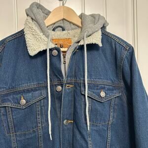 Vintage 90s Sherpa Lined Denim Jacket M Hooded Trucker Workwear Y2K Oversized