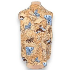 Vintage 90s Shirt Tan Sleeveless African Map Animal Zebra Print Plus Size 2X
