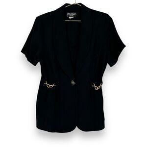 Vintage 90s Short Sleeve Hourglass Blazer Jacket Gold Jewelry Fran Fine Style S