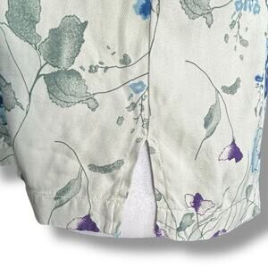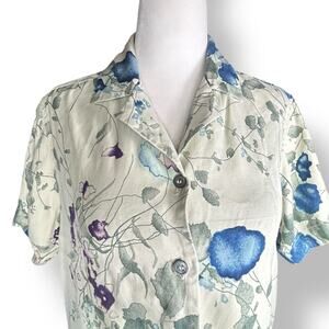 Vintage 90s Silk Floral Button Up Shirt Purple Blue Green Flowers Size Small