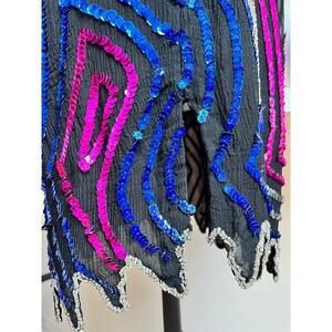 Colors: Black base w/ fuchsia, cobalt, silver sequins