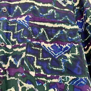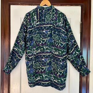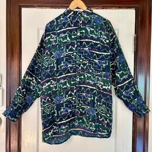 Vintage 90s Zig Zag Pattern Silk Button Down Shirt Size Large