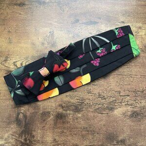 Vintage 90s SilkScapes Mens Bow Tie Matching Cummerbund Hand Painted Silk