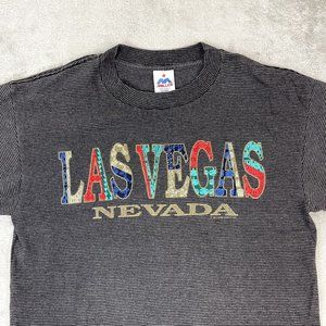 Vintage 90's Single Stitch Las Vegas Nevada Pinstriped Short Sleeve T-Shirt with spellout on front, made in USA!