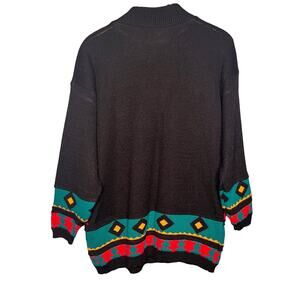 Vintage 90s Diana Marco Red Turquoise Aztec Style Sweater Mock Neck Size XL