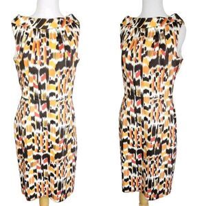 Vintage 90's David Meister Sleeveless Boatneck Sheath Dress Orange Brown Abstract Print Made in USA