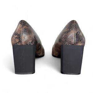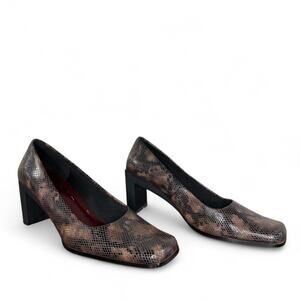 Vintage 90s Snakeskin Block Heel Pumps 8.5 – Square Toe Office Siren Retro Y2K