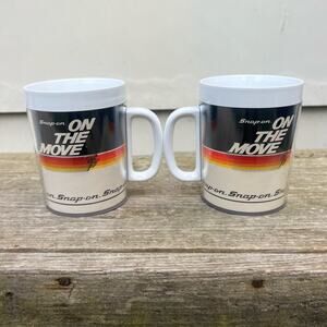 Vintage 90s Snap On Tools USA Thermo-Serv "On The Move" Coffee Mugs Set of 2 Plastic White Good preowned condition I have 4 pairs of these mugs listed, if you are interested in more than just 2!