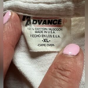 Good preowned condition; distressing throughout at edges of shirt, small holes; some marks throughout shirt as it has been well loved since the early 90s. Lived in and ready to go!