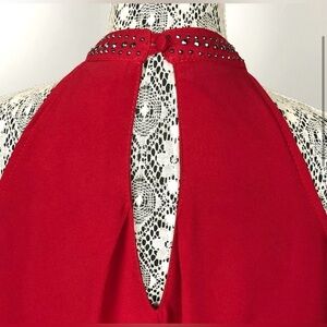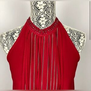 Vintage 90's Solution crepe halter top with fringe and studs in red. Size: Small