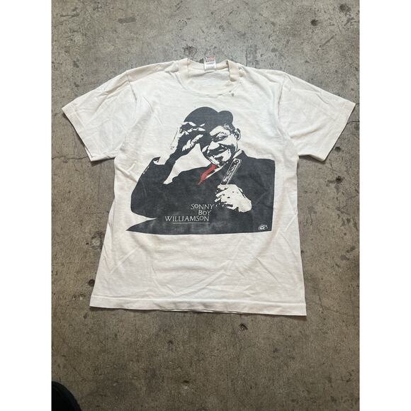 Vintage 90s Sonny Boy Williamson Blues Legend White Single Stitch Tee M Distress
